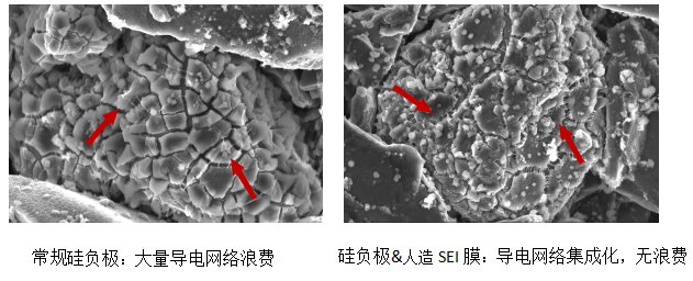 (3)减少与电解液反应,抑制负极膨胀,降低内阻,提升电池长循环性能。